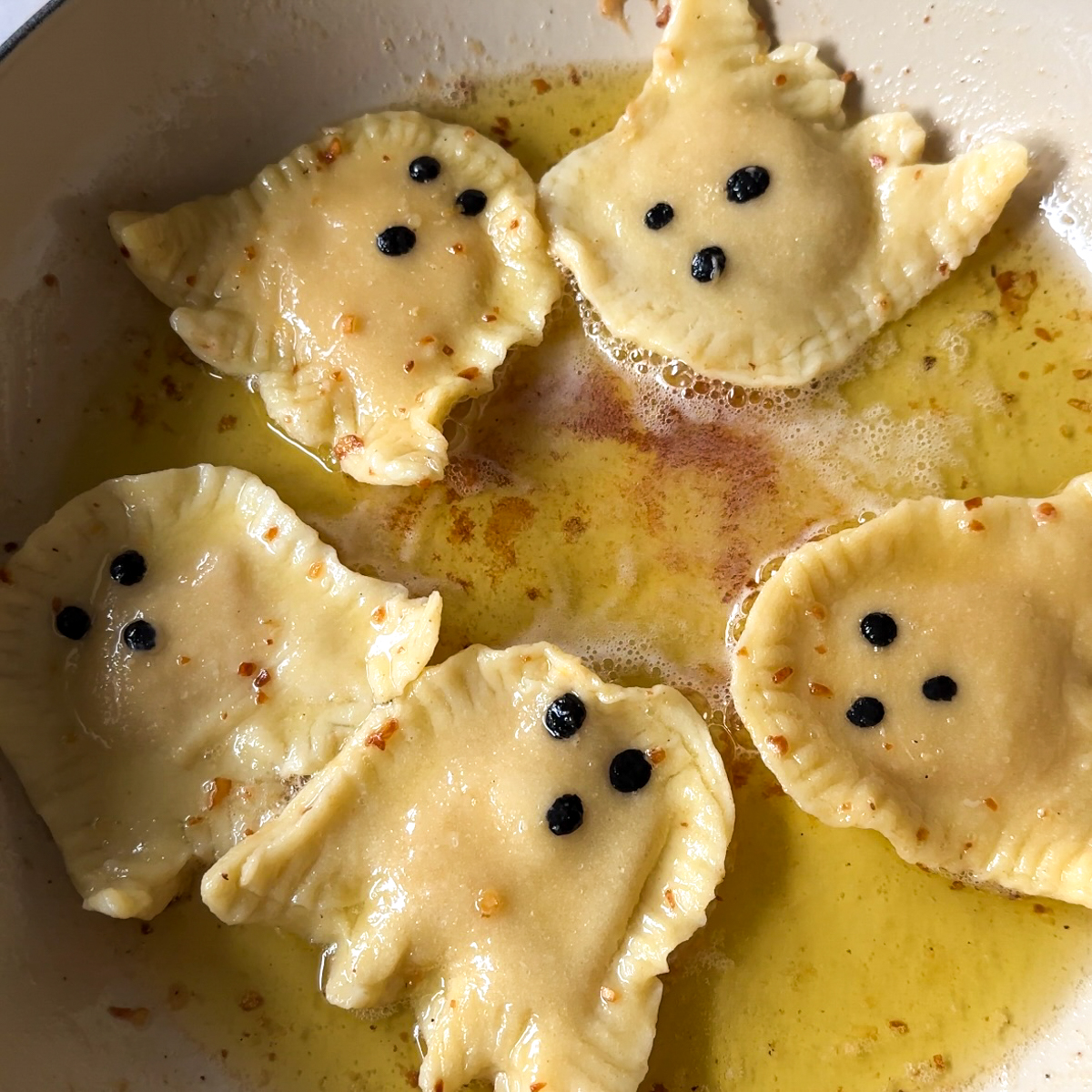 - Note: If making ghost-shaped ravioli (optional), see note below.