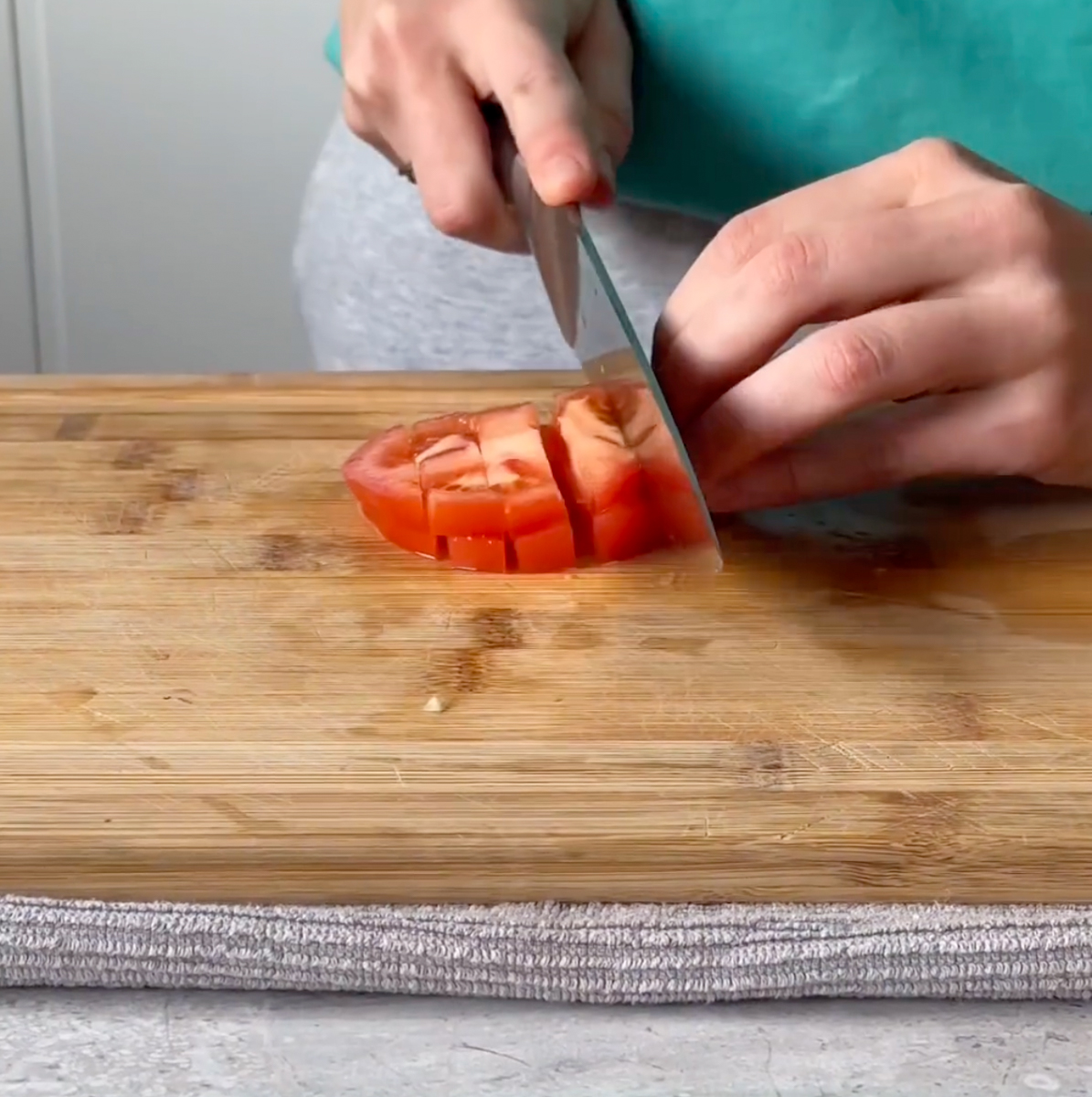 - Start by dicing the red onion and tomato; set them aside.